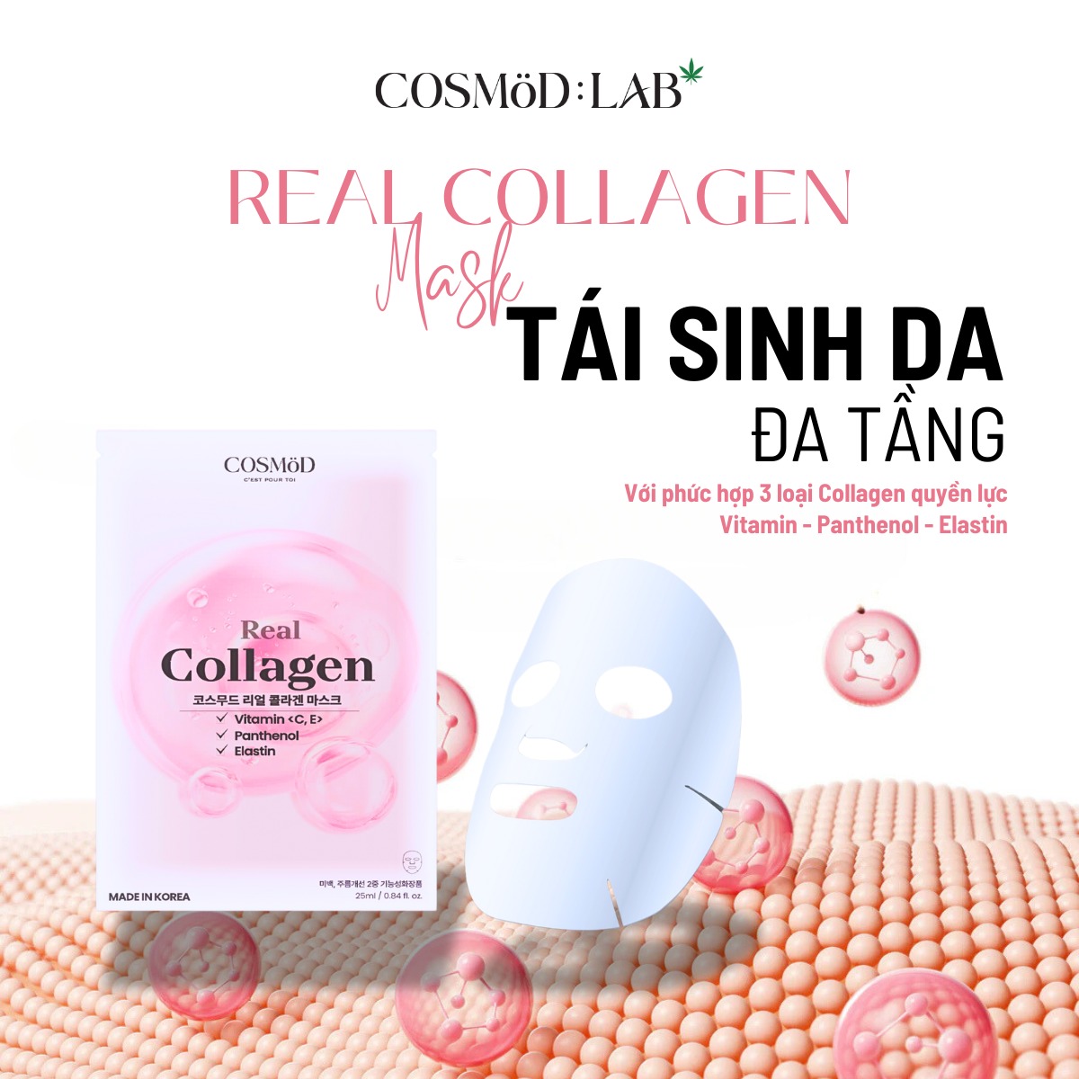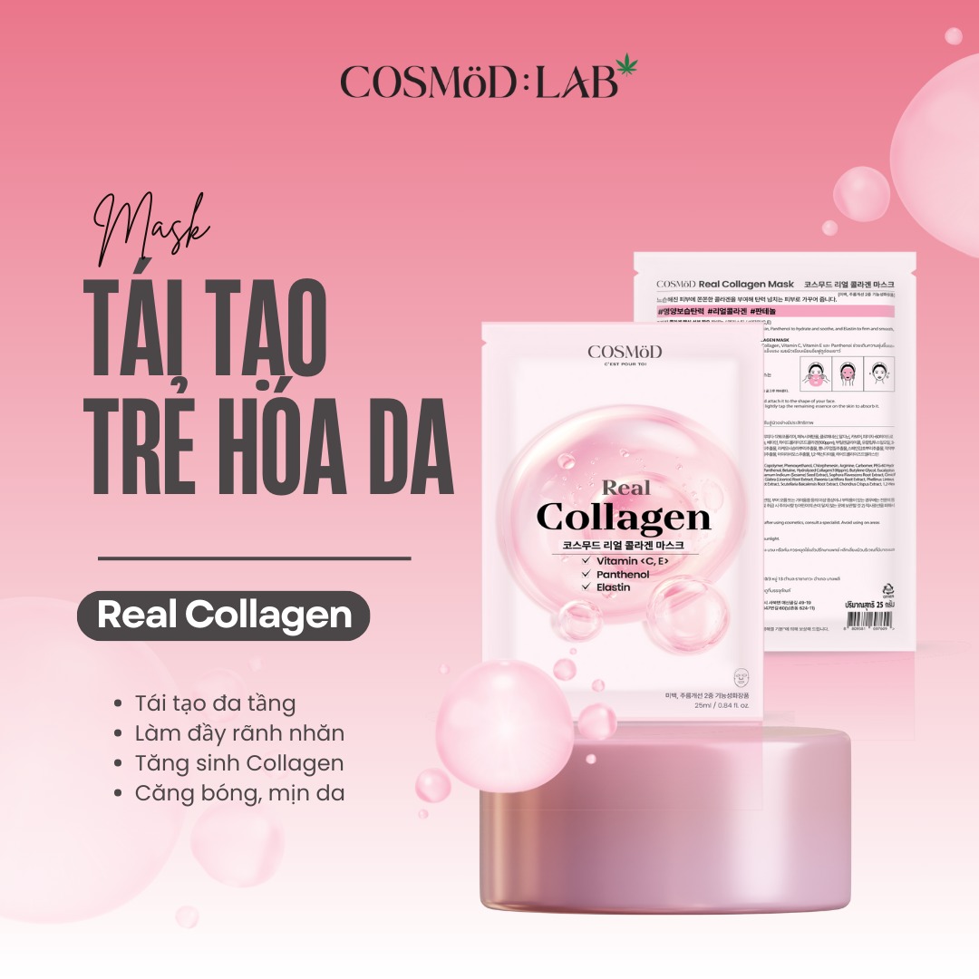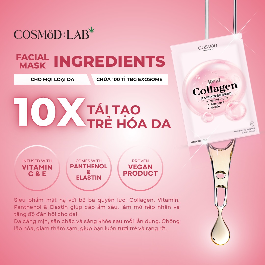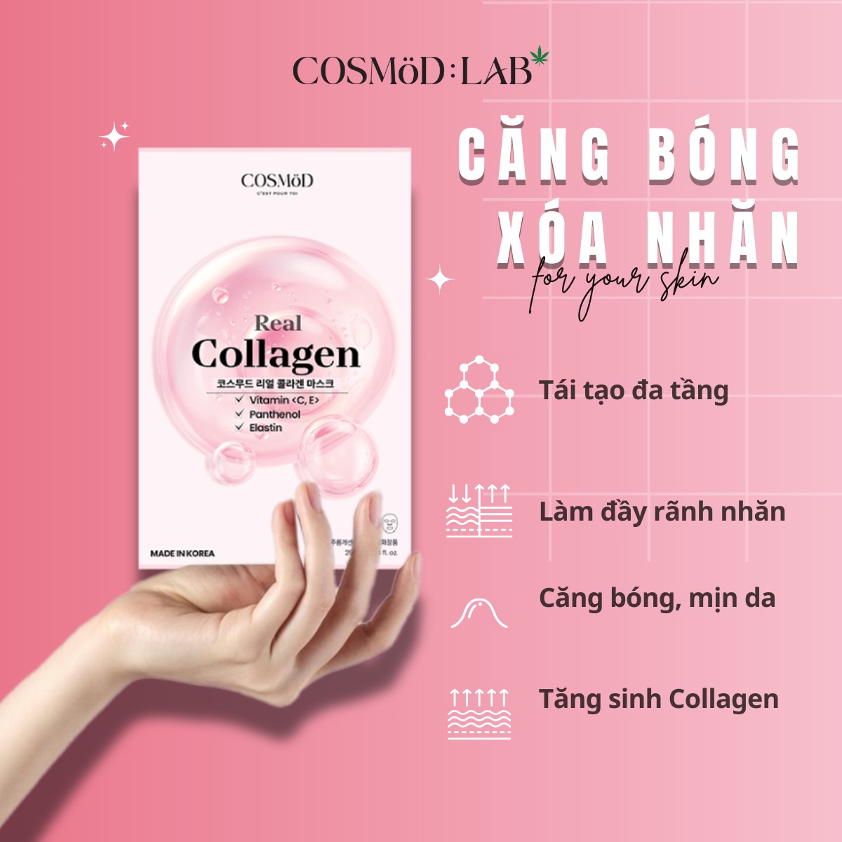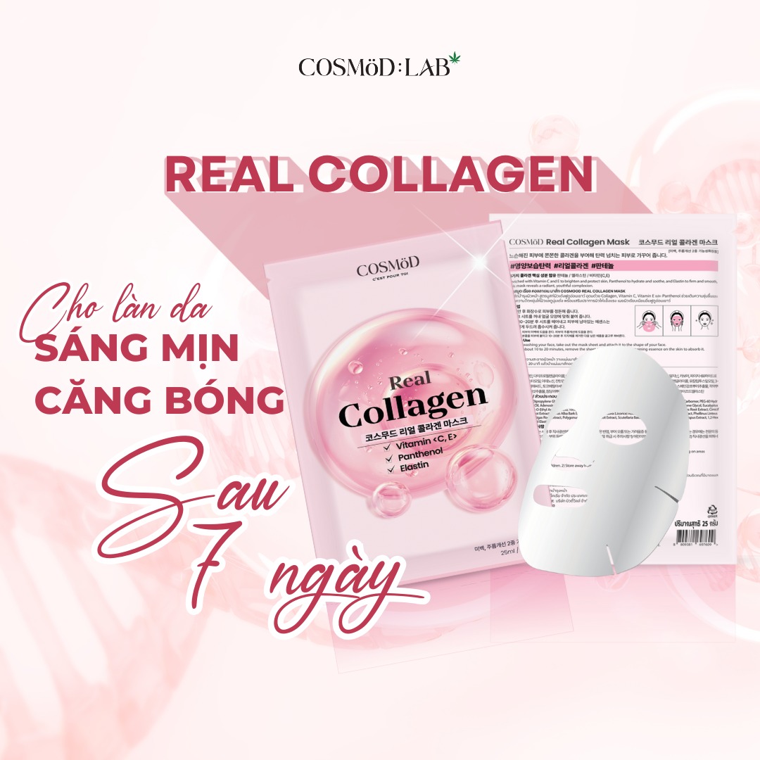 - Mặt Nạ Cosmod Real Collagen Vitamin C E Panthemol Elastin - Hồng