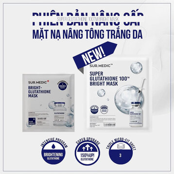 Mặt Nạ Dưỡng Trắng Sur.Medic là dòng mặt nạ cải tiến từ dòng mặt nạ dưỡng trắng cũ của Sur.Medic. Sản phẩm nổi bật với thành phần Glutathione tăng 150%, có khả năng tăng sáng cho sắc da trong mướt, tăng cường độ đàn hồi cho cấu trúc da săn chắc hơn và tăng ẩm giúp cho bề mặt da láng mịn. Mặt nạ ứng dụng công nghệ Triple Micro Fit Sheet giúp cho các dưỡng chất thẩm thấu sâu vào da, giữ ẩm và dưỡng sáng da nhanh chóng.