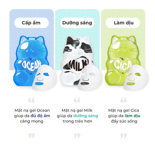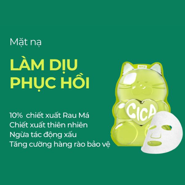 Mặt Nạ EDIT.B Waterfull Gummy Cica Làm Dịu Da 25ml: Chứa chiết xuất từ Rau má, giúp làm dịu da nhạy cảm, giảm kích ứng và hỗ trợ phục hồi cho làn da mụn.