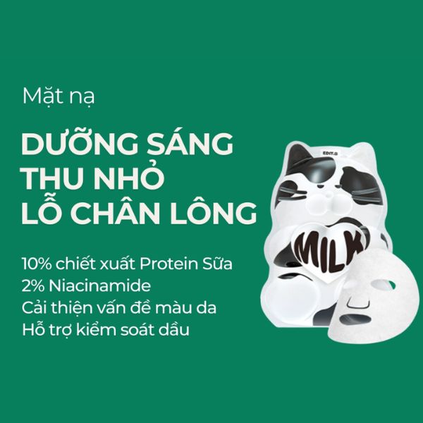 Mặt Nạ EDIT.B Waterfull Gummy Milk Dưỡng Trắng Da 25ml: Chứa Niacinamide và Protein sữa, giúp làm sáng da và cải thiện độ đều màu cho da.