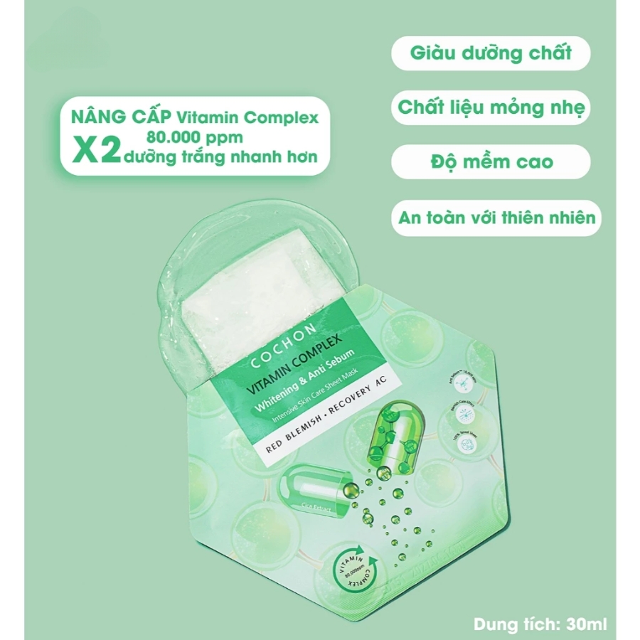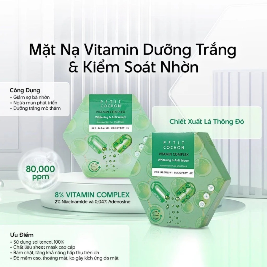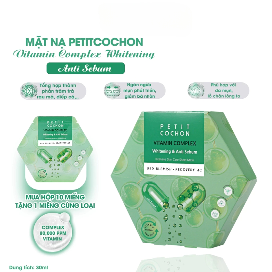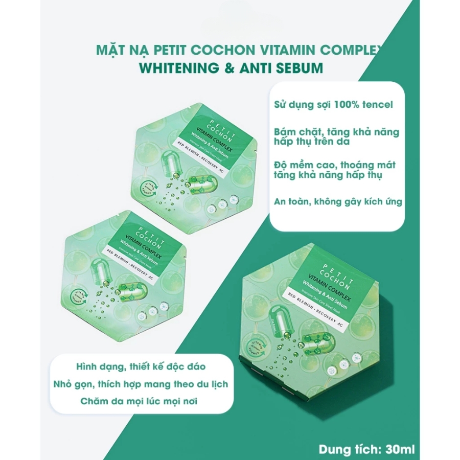 - Mặt Nạ Dưỡng Trắng, Hỗ Trợ Giảm Mụn Petitcochon Vitamin Complex Whitening & Anti Sebum (Xanh Lá)