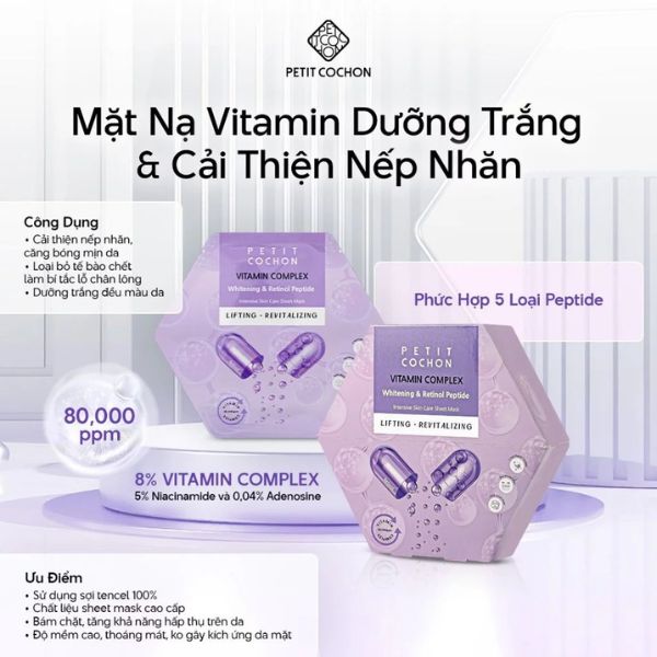 Mặt Nạ Dưỡng Trắng, Cải Thiện Nếp Nhăn Petit Cochon Vitamin Complex Whitening & Retinol Peptide - Lifting Revitalizing