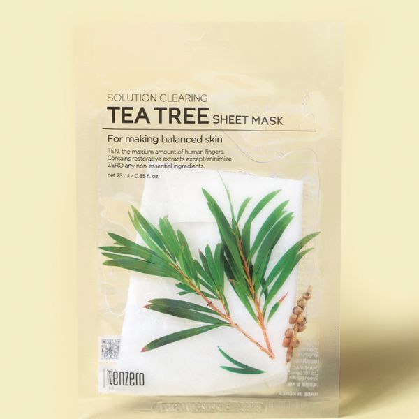 Mặt Nạ Tenzero Solution Clearing Tea Tree Sheet Mask 25ml có chứa thành phần dầu lá tràm trà, giúp làm dịu, cải thiện tình trạng da mệt mỏi, phục hồi da.