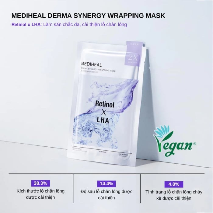 Mediheal Derma Synergy Wrapping Mask là dòng mặt nạ cao cấp với công nghệ “wrapping” - màng sinh học ôm khít da, giúp khóa dưỡng chất, tăng hiệu quả thẩm thấu gấp nhiều lần so với mặt nạ thông thường.