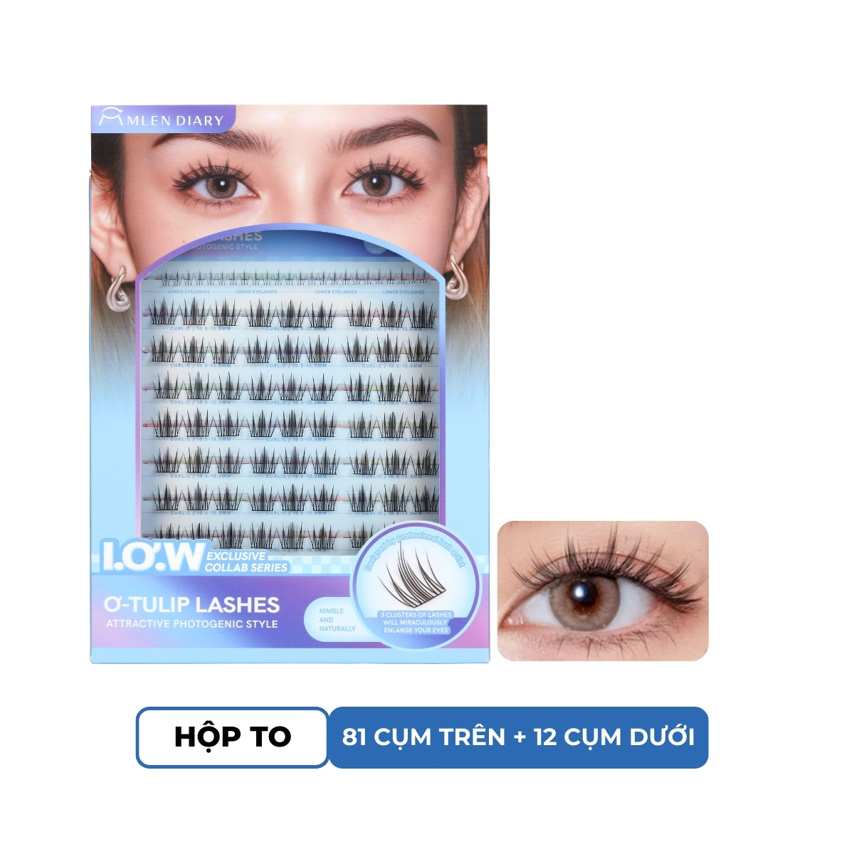Bộ sưu tập Mi giả Mlen Diary In Other Words (I.Ơ.W) không chỉ là sự diễn đạt lại ngôn từ mà còn là một định nghĩa mới về sức mạnh và giá trị của phụ nữ. Thế giới cần một tiếng nói khác, một tiếng nói dám thách thức truyền thống và thể hiện cá tính độc đáo. Thông qua nhiều sản phẩm và câu chuyện của chúng tôi,Chúng tôi hy vọng rằng mỗi người phụ nữ đều có thể tìm thấy vẻ đẹp và sự tự tin của riêng mình, dũng cảm thể hiện bản thân và định hình lại thế giới của họ. Mà còn là sự lựa chọn lý tưởng cho những nàng yêu thích phong cách trang điểm cuốn hút và nổi bật. Với thiết kế sợi mi dày vừa phải, cong tự nhiên giúp đôi mắt trông sâu hơn, sắc sảo hơn nhưng vẫn giữ được sự mềm mại.