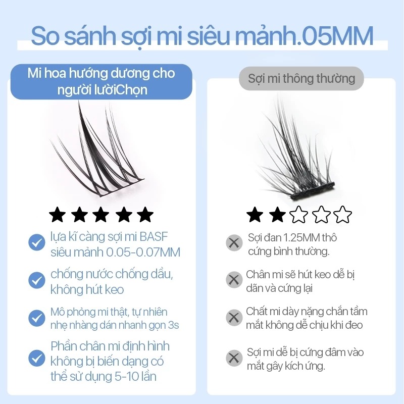 - Hộp nhỏ: 36 cụm mi trên + 6 cụm mi dưới