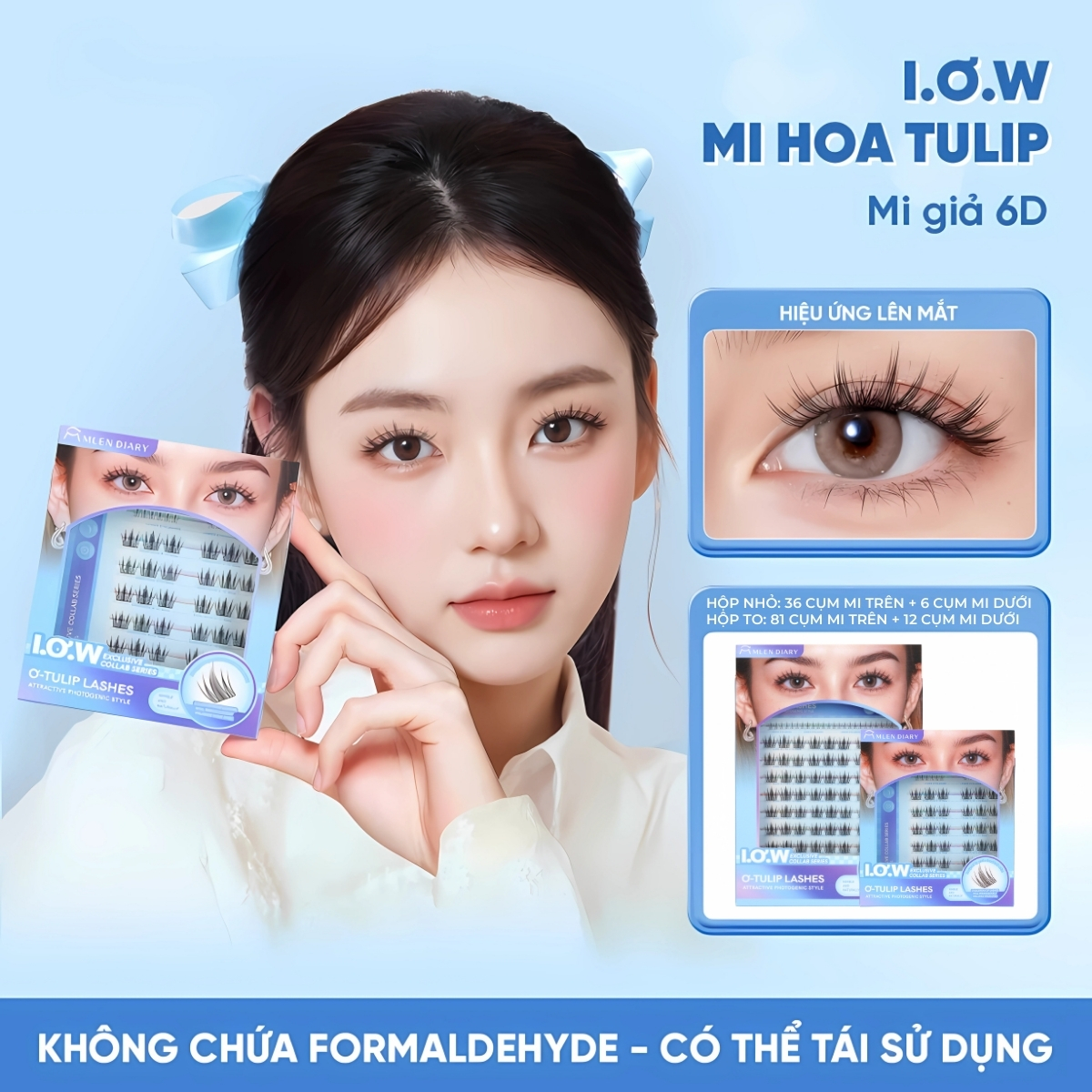 - Hộp nhỏ: 30 cụm mi trên + 6 cụm mi dưới
