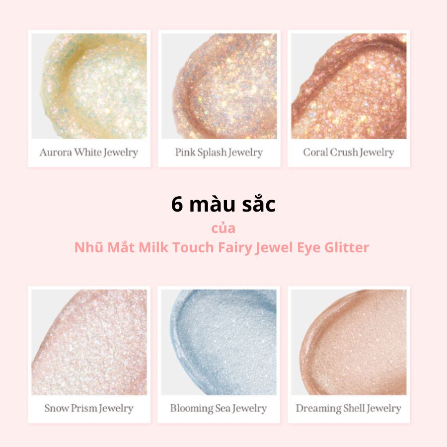 Nhũ Mắt Milk Touch Fairy Jewel Eye Glitter là sản phẩm đến từ thương hiệu mỹ phẩm Hàn Quốc Milk Touch.