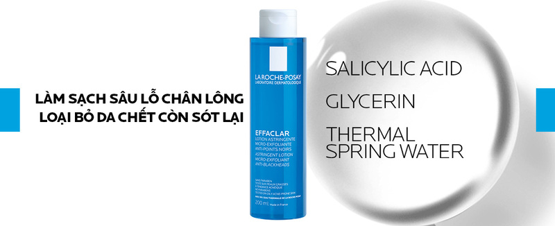 - Nước Cân Bằng La Roche-Posay Effaclar Astringent Lotion: Da dầu, da mụn.