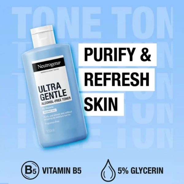 Nước Hoa Hồng Neutrogena Không Cồn 150ml sở hữu công thức chứa các thành phần nổi bật trong việc làm sạch, dưỡng ẩm, làm dịu và phục hồi da như Polysorbate 20, Butylene Glycol và Panthenol. Kết cấu dạng nước mỏng nhẹ, giúp toner dễ dàng thẩm thấu và da, không gây nhờn dính.