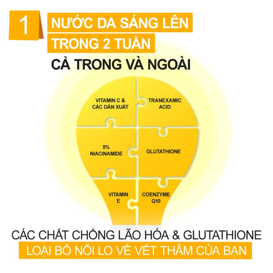 Sản phẩm này cũng chứa các thành phần chống oxy hóa mạnh mẽ như Glutathione và Tranexamic Acid, giúp bảo vệ da khỏi các gốc tự do và cải thiện các dấu hiệu lão hóa. Coenzyme Q10 và Vitamin E tăng cường khả năng chống oxy hóa, trong khi Panthenol (Vitamin B5) và Sodium Hyaluronate cung cấp độ ẩm sâu, làm dịu da và giữ cho làn da mềm mịn mà không gây khô căng. Miếng pad được làm từ 100% sợi cotton mềm mịn, với thiết kế hộp vệ sinh và dụng cụ gắp bông tiện lợi.