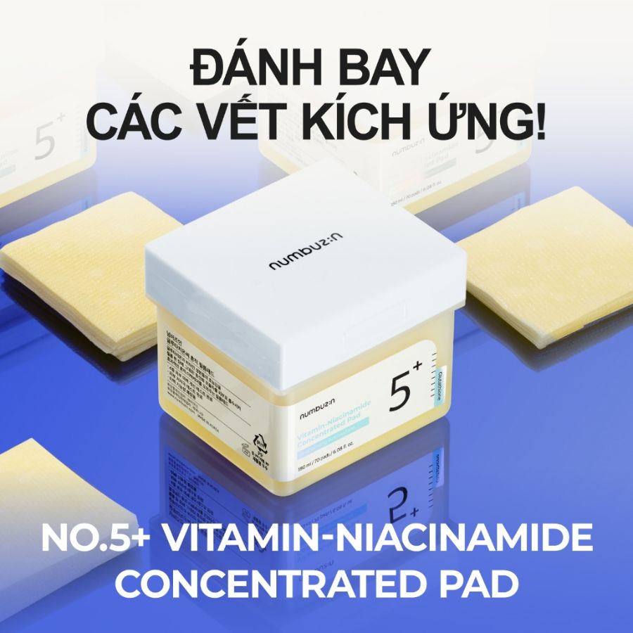 Numbuzin Vitamin Niacinamide Concentrated Pad No.5 được thiết kế để tẩy da chết hàng ngày và cải thiện làn da không đều màu. Sản phẩm chứa PHA và LHA, giúp loại bỏ tế bào da chết nhẹ nhàng mà không gây kích ứng. Đặc biệt, với 5% Niacinamide và Vitamin C, sản phẩm giúp dưỡng sáng da, giảm thâm mụn và ngăn ngừa tình trạng tăng sắc tố, mang lại làn da mịn màng và tươi sáng.