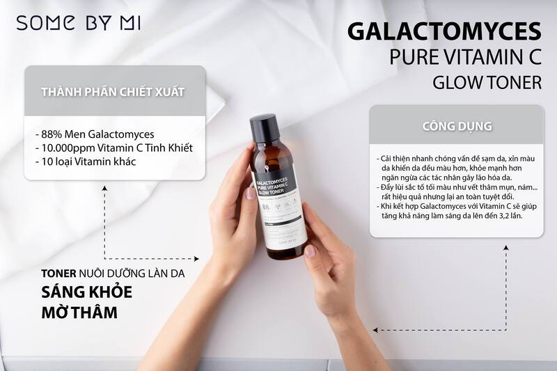 - Galactomyces và Vitamin C tươi: chiếm hơn 80% thành phần giúp dưỡng trắng da, làm da sáng hồng cho bạn làn da tươi trẻ, đều màu và căng bóng tự nhiên.