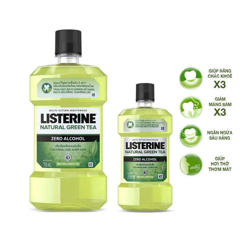 Nước Súc Miệng Listerine Natural Green Tea Zero Alcohol Ngừa Sâu Răng mang đến sự kết hợp hoàn hảo giữa chiết xuất từ Trà Xanh và muối Fluoride, tạo nên một lựa chọn hoàn toàn không chứa cồn và phù hợp cho mọi đối tượng.