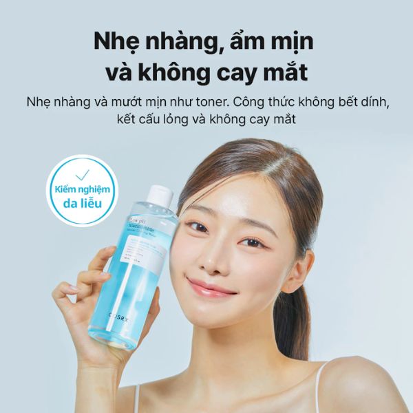 Cosrx Low pH Niacinamide Micellar Cleansing Water có kết cấu mỏng nhẹ, mướt mịn, không gây bết dính, không làm cay mắt, phù hợp với da nhạy cảm.