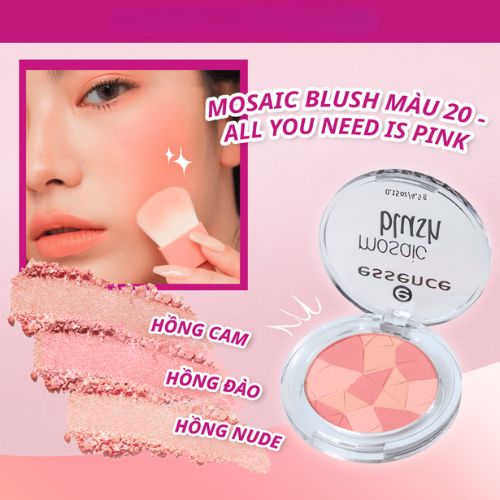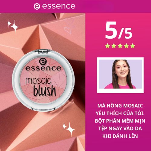Phấn Má Essence Mosaic Blush #20: Là sự kết hợp của 3 tông màu: Hồng cam, hồng đào và hồng nude cùng ánh nhũ nhẹ nhàng, cho nàng thêm nổi bật.