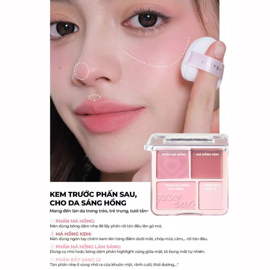 Judydoll Blush & Highlight Palette là bảng phấn má đa năng kết hợp cả chất kem và phấn, giúp dễ tán, tiệp da và lên màu tự nhiên. Thiết kế gồm 4 ô phấn tiện dụng: má hồng kem, phấn má, highlight bắt sáng và phấn bắt sáng dạng lì giúp bạn dễ dàng thực hiện các bước trang điểm cơ bản đến tạo điểm nhấn nổi bật, nâng tông cho gương mặt rạng rỡ.