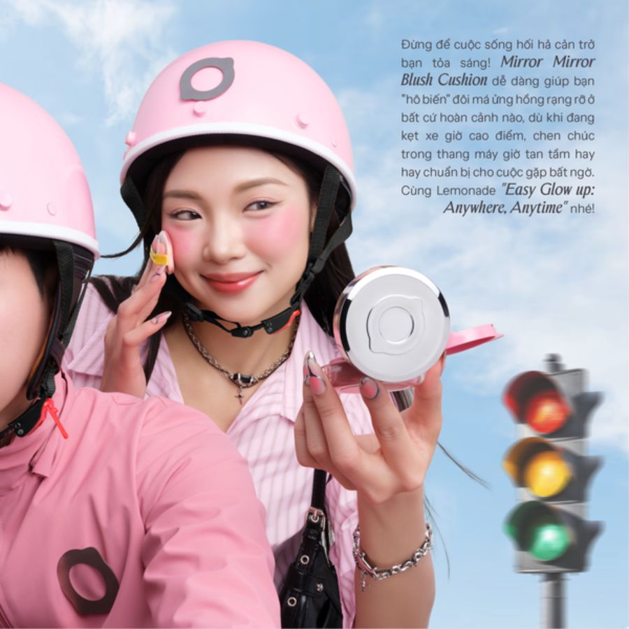 Phấn má Lemonade Mirror Mirror Blush Cushion là dòng má hồng cushion thế hệ mới đến từ thương hiệu nội địa đình đám Lemonade, mang đến trải nghiệm làm đẹp tiện lợi và rạng rỡ mọi lúc mọi nơi. Với thiết kế nhỏ gọn, nắp trắng ánh gương cá tính cùng bông mút đi kèm, sản phẩm dễ dàng “biến hóa” đôi má ửng hồng chỉ trong vài giây, dù bạn đang vội ra khỏi nhà, kẹt xe giữa ngã tư hay chuẩn bị bước vào cuộc hẹn quan trọng.
