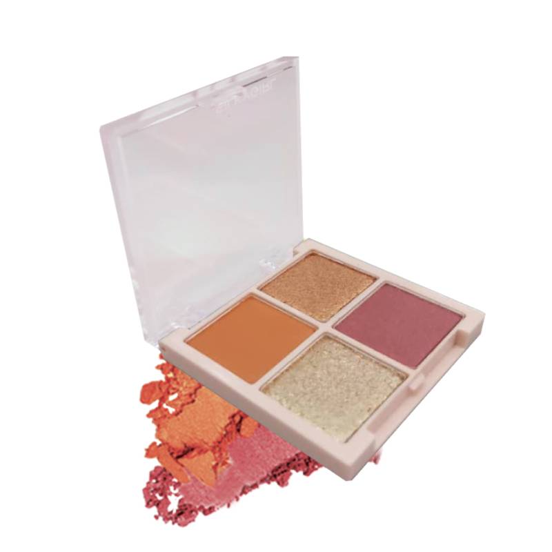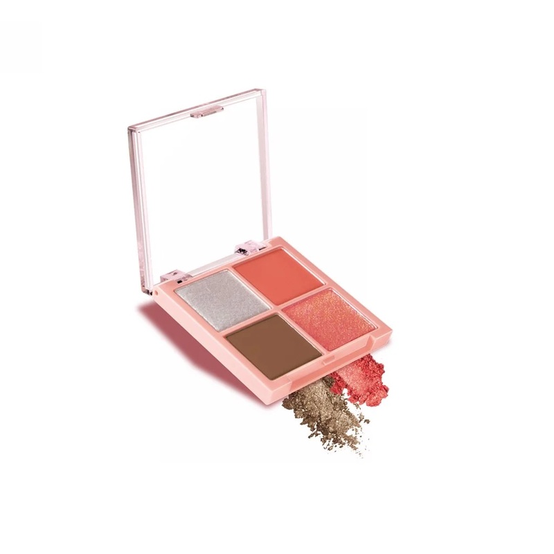 Silkygirl Full Bloom Shadow Quad có bao bì nhỏ gọn, dễ thương. Sản phẩm được thiết kế dạng hộp vuông với 4 ô màu gồm 2 ô lì màu cơ bản và 2 ô màu nhũ lung linh tạo hiệu ứng lấp lánh cho đôi mắt. Phần nắp hộp có màu trong suốt, giúp dễ dàng thấy được màu phấn bên trong. Phấn mắt 4 ô Silkygirl bao gồm những màu sắc trendy, trẻ trung, tươi tắn với 3 tông màu chủ đạo là hồng, cam và nâu. Càng đánh nhiều lớp thì sự kết hợp các màu sắc càng trở nên rõ nét, cuốn hút. Nhũ mắt được phủ nhiều lớp giúp tăng cường độ lấp lánh, cho nàng tỏa sáng ở mọi góc độ.