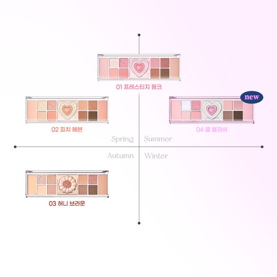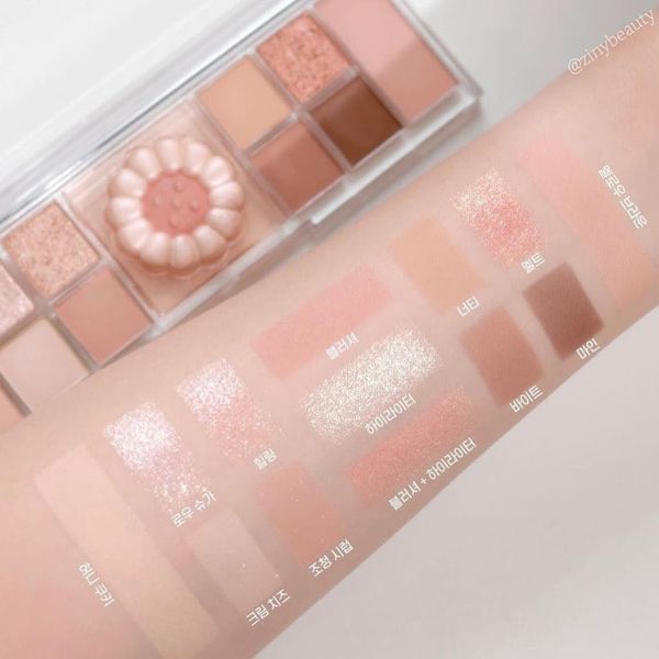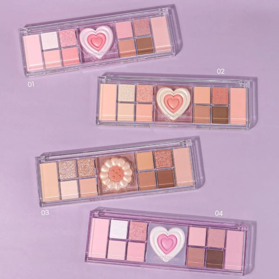 Sản phẩm có thiết kế độc đáo với 10 ô phấn màu quen thuộc, gồm ô màu lì, màu nhũ,..., thường thấy ở các bảng phấn mắt thông thường. Thêm vào đó, ở giữa bảng màu là ô phấn hình trái tim và hoa 3D xinh xắn, có thể dùng để làm phấn bắt sáng hay đánh má hồng.