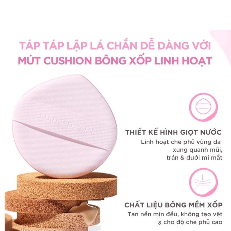 Phấn nước Judydoll Fresh Matte Cushion mang đến lớp nền mỏng nhẹ nhưng vẫn che phủ cực tốt, giúp làn da trông đều màu và rạng rỡ hơn. Nhờ công nghệ che phủ thoáng khí cùng lớp nền bền màu lên đến 36 giờ, sản phẩm dễ dàng “xử lý” các khuyết điểm như mụn, vết thâm hay vùng da không đều màu mà vẫn giữ được độ mịn màng tự nhiên. Chất phấn tơi xốp, dễ tán, không gây mốc nền hay xuống tone suốt cả ngày dài.