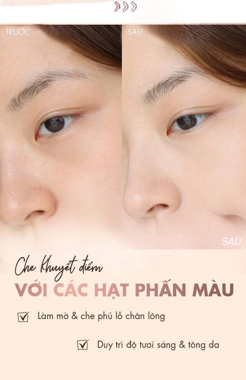 Với công thức cải tiến, các hạt phấn bột siêu mịn hình cầu liên kết tạo thành lớp màng mỏng chống thấm nước, giúp giữ lớp nền bền đẹp lâu trôi suốt nhiều giờ liền, cho lớp nền khô thoáng, các nàng hoàn toàn có thể tự tin tham gia các hoạt động ngoài trời mà không cần phải dặm lại lớp nền.