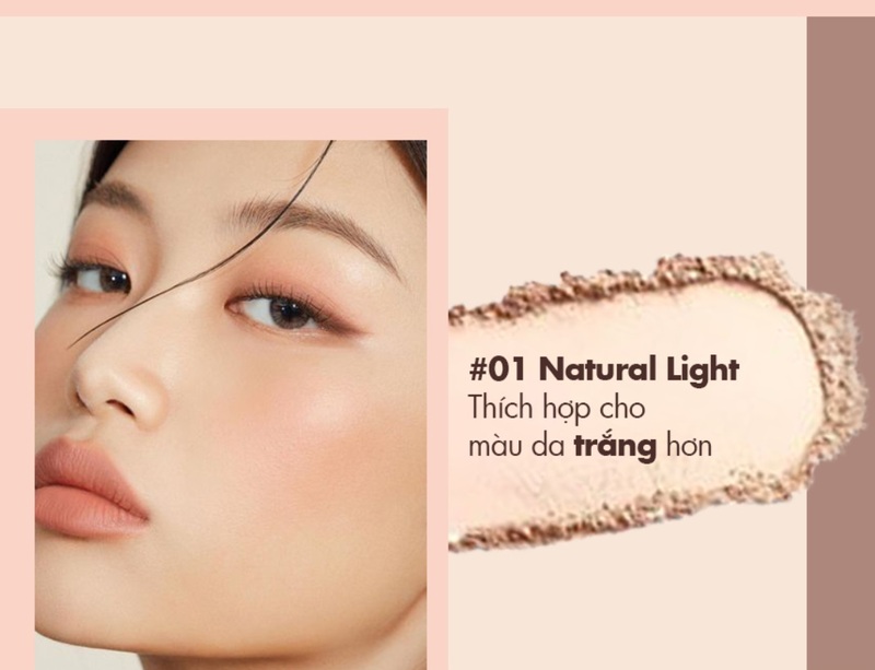 - 01 Natural Light: là màu sáng, thích hợp với những nàng có làn da trắng, phù hợp với mọi loại da từ hỗn hợp thiên khô đến da dầu.