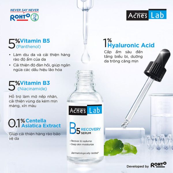 Serum Acnes B5 Recovery Serum Tăng Cường Dưỡng Ẩm, Làm Dịu Da 25ml là dòng tinh chất dưỡng da đặc biệt đến từ thương hiệu Acnes – Nhật Bản, nổi bật với khả năng cấp ẩm và làm dịu da một cách hiệu quả.