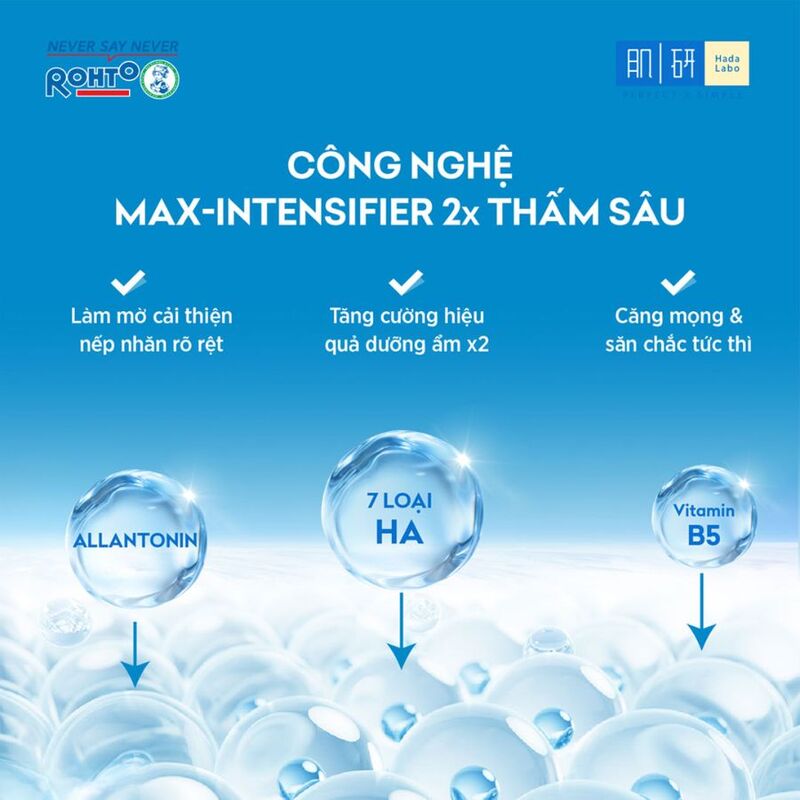 Hada Labo Advanced Nourish Hyaluronic Acid Serum sử dụng công nghệ Max Intensifier giúp đưa dưỡng chất vào sâu bên trong da, tăng cường hiệu quả dưỡng trắng.