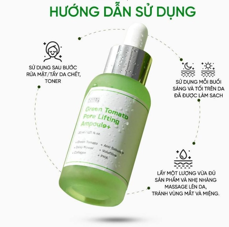 Serum Sungboon Green Tomato Pore Lifting Ampoule+ 40ml là sản phẩm đến từ thương hiệu Sungboon. Sản phẩm nổi bật với công thức chứa nhiều thành phần dưỡng da, có thể kể đến như chiết xuất cà chua xanh, Niacinamide, PHA, Anti-Sebum P, Niacinamide, Rễ nghệ, Cam thảo, 5 loại HA, Panthenol, Ceramide NP,...