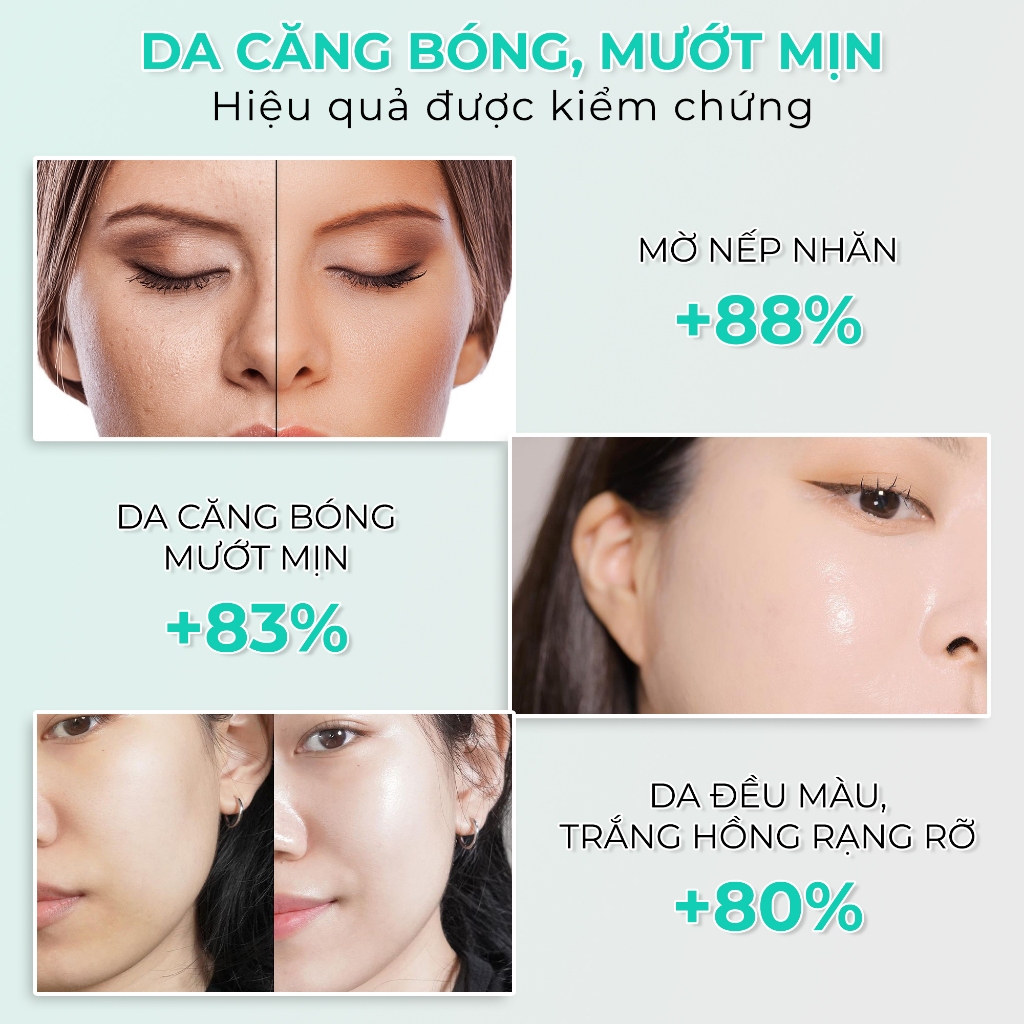 Sản phẩm chứa nhiều thành phần dưỡng da độc đáo, tiêu biểu là bộ ba Vitamin A - Retinyl palmitate, Bakuchiol và Collagen thuỷ phân chiết xuất từ cá hồi giúp cải thiện các dấu hiệu lão hoá trên da, làm mờ nếp nhăn, dưỡng da đều màu, kích thích tăng sinh Collagen.