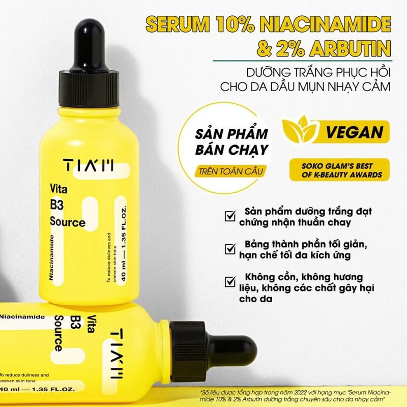 Serum Tia'm Vita B3 Source là sản phẩm đột phá trong việc dưỡng trắng, phục hồi làn da, phù hợp với mọi loại da, đặc biệt là da dầu, mụn và nhạy cảm.