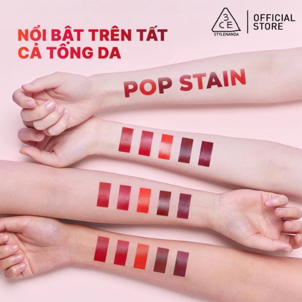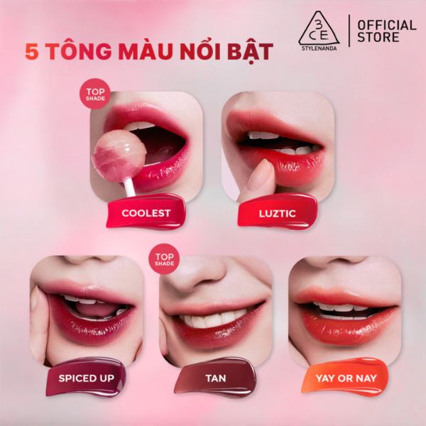 3CE Lazy Pop Lip Stain chính là sự kết hợp hoàn hảo giữa sự tươi mới, năng động và vẻ đẹp thời thượng chuẩn Hàn Quốc, phù hợp với mọi phong cách trang điểm, từ nhẹ nhàng đến cá tính.