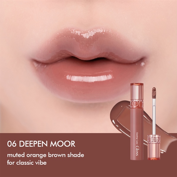 Romand Glasting Color Gloss có sắc son sống động và tạo được độ trong suốt trên môi. Son lên môi rõ ràng và tinh khiết ngay từ lần thoa đầu tiên, trở nên đậm nét và sống động hơn sau khi thoa nhiều lớp. Sản phẩm có bảng màu trong suốt và rực rỡ, tạo nét riêng biệt không thể tìm thấy ở các loại son bóng khác.
