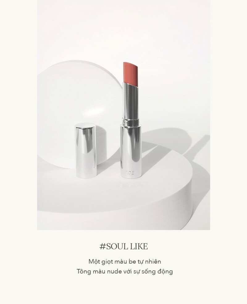 Son Dưỡng 3CE Glow Lip Color #Soul Like là gam màu nude trung tính, tạo cảm giác trong trẻo kèm theo chút nóng bỏng mỗi khi nhìn vào. Sản phẩm có độ bóng cân bằng, giúp tạo đôi môi đàn hồi và căng bóng suốt thời gian dài. Tuy nhiên, với một cây son nhiều dưỡng như 3CE Glow Lip Color thì khả năng bám màu sẽ không quá cao. Thông thường, son sẽ không trôi tuột trên môi, chỉ phai và lem trong trường hợp bạn ăn uống liên tục.