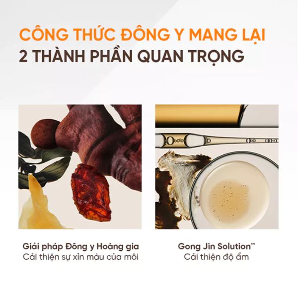Son Dưỡng Môi The History Of Whoo Mi Glow Lip Balm đến từ thương hiệu mỹ phẩm The Whoo. Sản phẩm sở hữu những thành phần độc quyền của The Whoo, nhờ bài thuốc Công Thần Đơn kết hợp với các thành phần cao cấp như đương quy, lộc nhung, sơn thù du, cỏ xạ hương, thiên môn đồng, vàng, ngọc trai, hổ phách, chi tử, sơn phòng phong, cát căn, rễ thược dược, đào nhân, thăng ma,... giúp đem đến đôi môi đủ ẩm, mướt mịn, tươi sáng, cải thiện nếp nhăn môi.