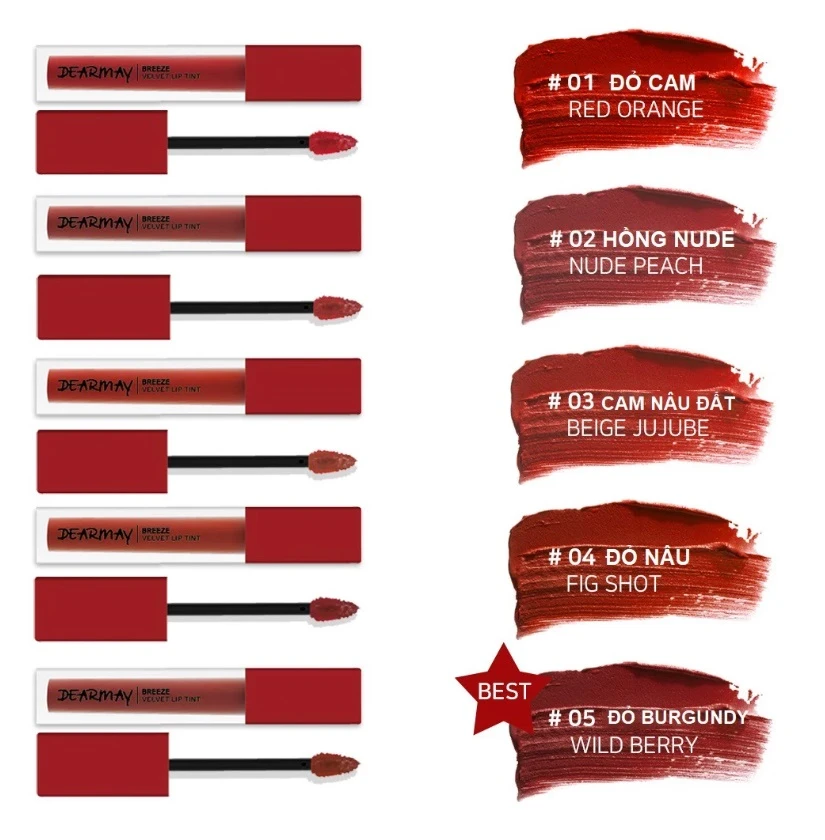 Hiện tại, Cocolux đang có sẵn Son Kem Dearmay Breeze Velvet Lip Tint với những màu như sau: