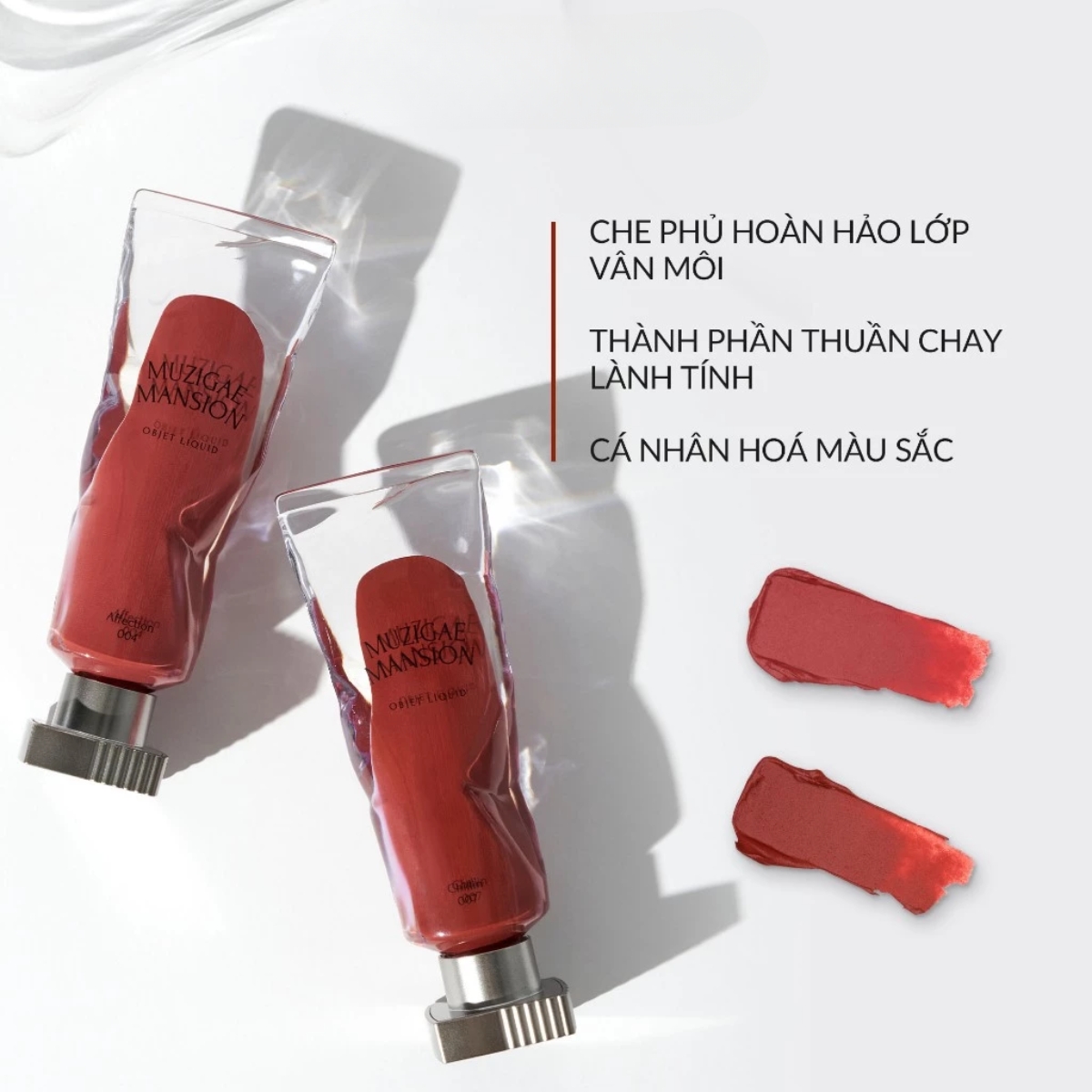 Son Kem Muzigae Mansion Objet Liquid Thuần Chay là dòng son kem lì nổi bật của Muzigae Mansion, gây ấn tượng mạnh với công thức thuần chay an toàn và thiết kế bao bì độc đáo, cá tính. Chất son mịn mượt, dễ tán, cho hiệu ứng lì nhưng không gây khô môi, mang lại đôi môi quyến rũ, bền màu cả ngày dài.