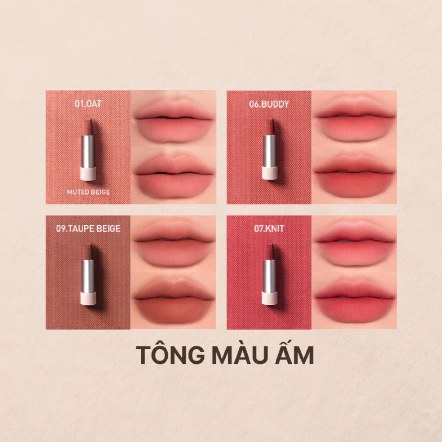Điểm nhấn của dòng son này chính là chất son lì mịn màng như nhung cashmere, mang lại cảm giác nhẹ nhàng khi sử dụng và không gây cảm giác bết dính. Sự bền màu cũng là một trong những yếu tố làm nên sức hút của sản phẩm này, giúp bạn tự tin suốt cả ngày dài mà không lo bị lem hay trôi màu.