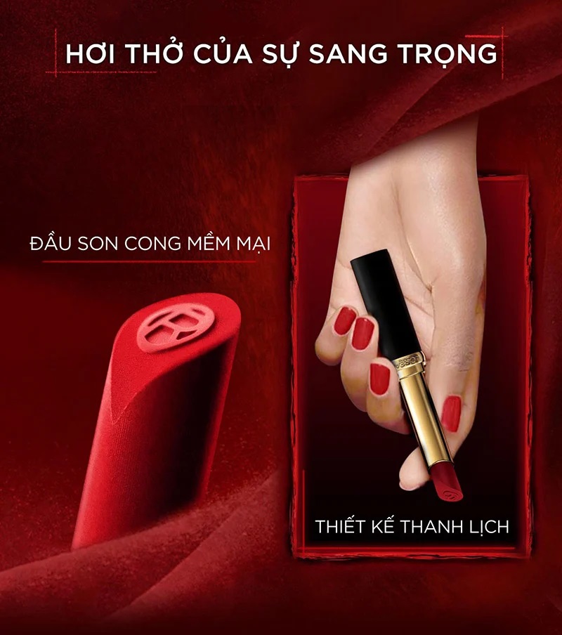 Son thỏi L'Oréal Color Riche có thiết kế ấn tượng với đầu son cong mềm mại, giúp bạn dễ dàng thao tác trong quá trình sử dụng. Son có phần nắp màu đen, kết hợp cùng thân son màu vàng ánh kim đem đến vẻ đẹp tinh tế, sang trọng cho sản phẩm.