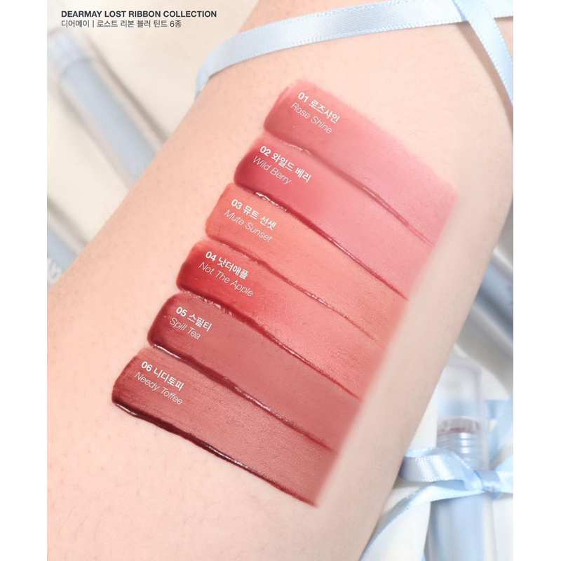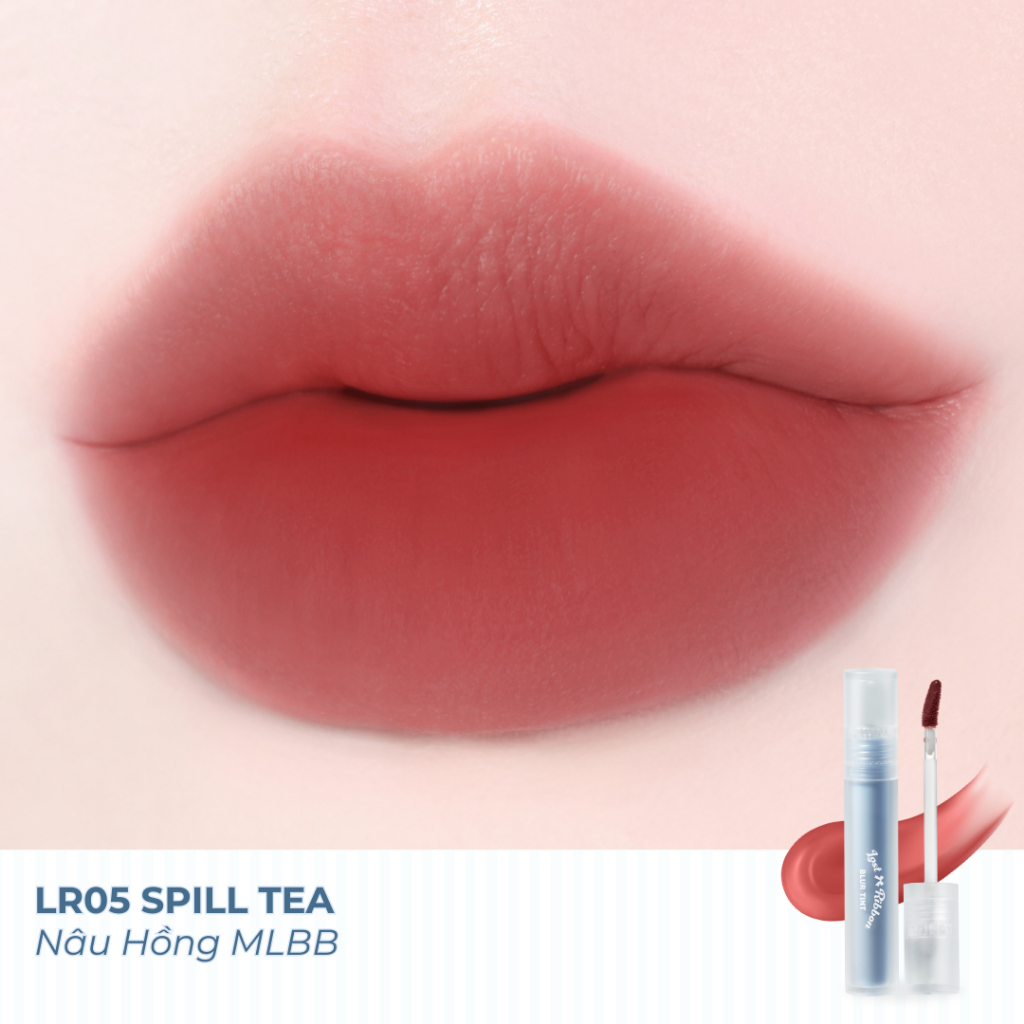 - Son Tint Dearmay Lost Ribbon Blur Tint LR05 Spill Tea: màu nâu hồng MLBB.