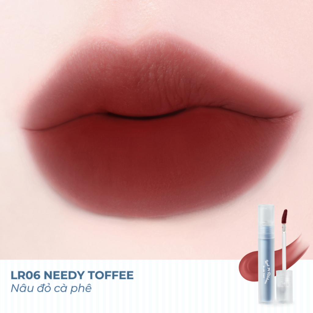 - Son Tint Dearmay Lost Ribbon Blur Tint LR06 Needy Toffee: màu nâu đỏ cà phê.