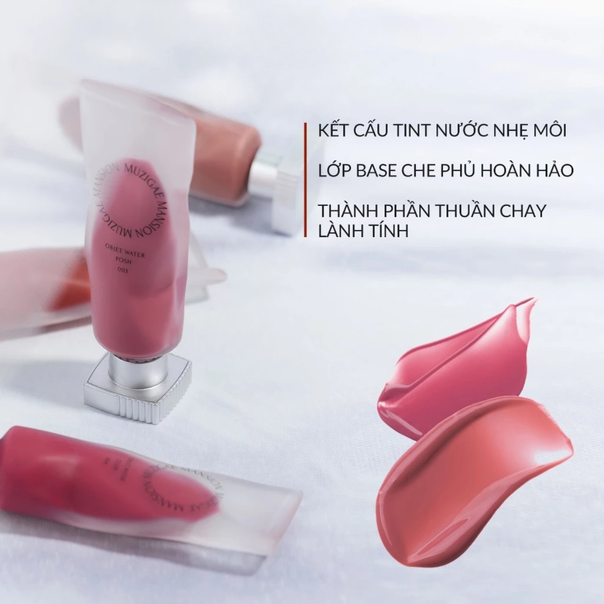 Son Tint Muzigae Mansion Objet Water là dòng son tint nước đình đám đến từ thương hiệu Hàn Quốc Muzigae Mansion. Với chất son lỏng nhẹ, dễ tán, sản phẩm mang lại lớp màu tươi tắn, trong trẻo và tự nhiên, phù hợp với phong cách trang điểm hằng ngày lẫn những buổi tiệc đặc biệt.