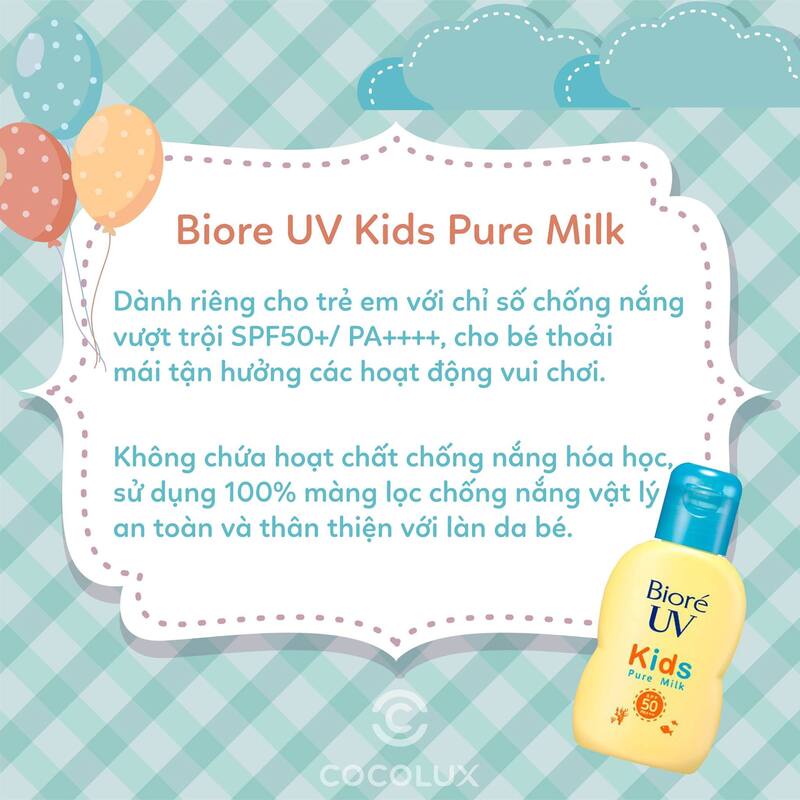 Sữa Chống Nắng Biore UV Kids Pure Milk 70ml là sản phẩm dành riêng cho trẻ em, đến từ thương hiệu nổi tiếng Bioré.