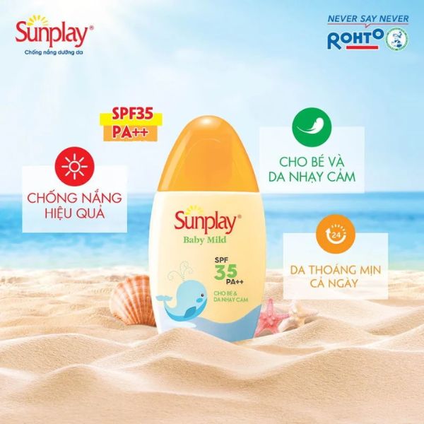 Không chỉ có kem chống nắng của người lớn mà Sunplay còn nghiên cứu và cho ra đời dòng kem chống nắng cho baby. Sữa Chống Nắng Sunplay Cho Bé & Da Nhạy Cảm SPF35 30g đáp ứng được nhu cầu chống nắng tối ưu nhưng vẫn an toàn nhẹ dịu với làn da, nhất là da mỏng manh của trẻ. Bạn có thể tự tin cho bé hoạt động ngoài trời, đi du lịch mà không sợ nắng làm hại da.