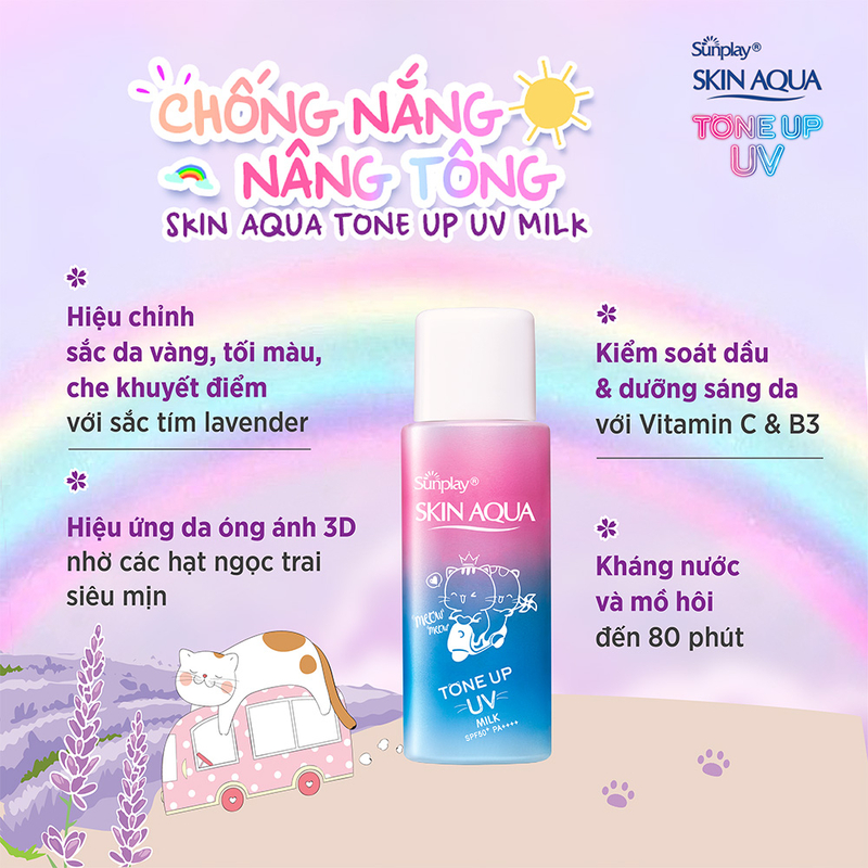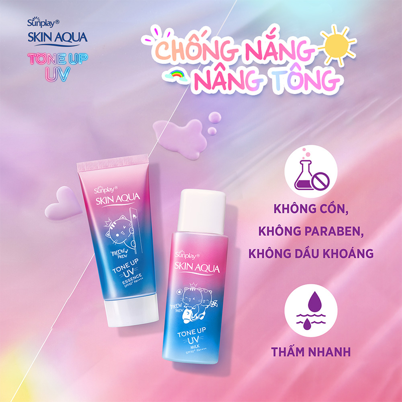 Sữa chống nắng Skin Aqua - Tone up UV Milk 50g là sản phẩm giúp chống nắng và bảo vệ da ưu việt suốt nhiều giờ liền. Với công thức độc đáo cùng khả năng hiệu chỉnh da nhờ sắc tím của hoa Lavender, sản phẩm kem chống nắng Sunplay Skin Aqua - Tone up UV trở thành bí kíp hoàn hảo giúp duy trì làn da sáng hồng và căng bóng suốt ngày dài.