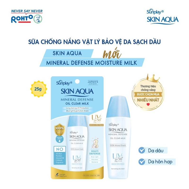Hiện sữa chống nắng Sunplay Skin Aqua Mineral Defense Oil Clear Milk SPF50+ PA++++ 25g đã có mặt tại COCOLUX.