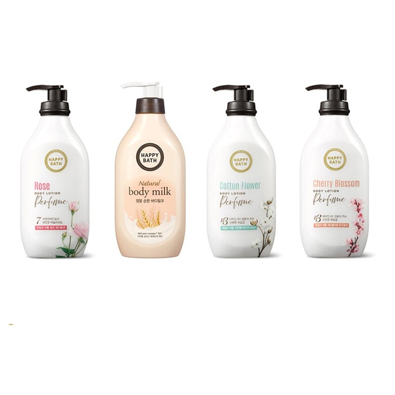 - Sữa dưỡng thể Happy Bath Natural Body Milk: Hương sữa gạo thơm mát, dễ chịu đem lại cảm giác thoải mái và thư giãn sau khi sử dụng. Ngoài ra, sữa gạo có chứa các tinh chất làm trắng arbutin giúp làn da căng mịn và trắng sáng tự nhiên.