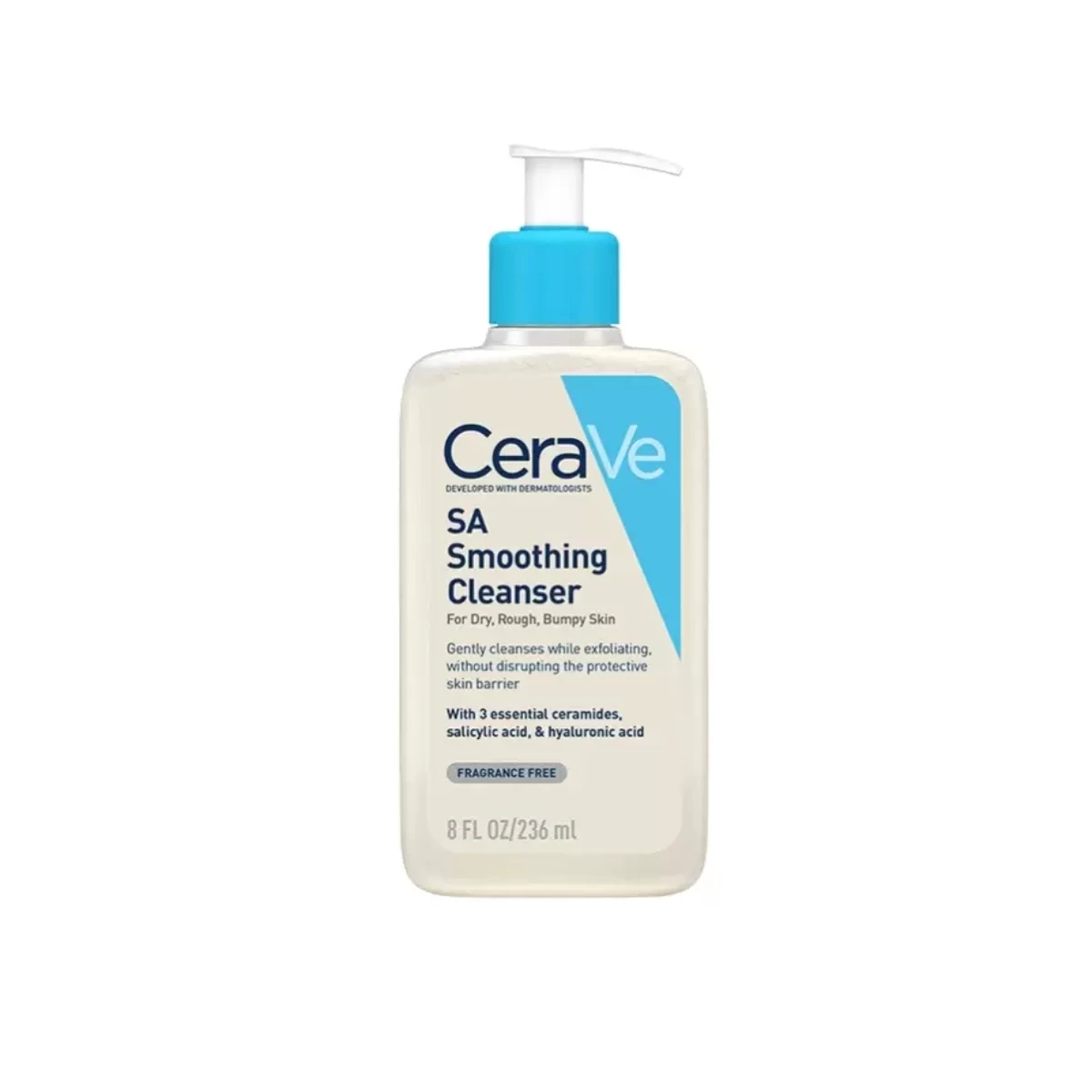 Sữa Rửa Mặt CeraVe SA Smoothing Cleanser 236ml là sản phẩm làm sạch sâu, an toàn cho da mụn, được phát triển cùng các bác sĩ da liễu. Chứa Salicylic Acid (BHA), sản phẩm giúp tẩy tế bào chết nhẹ nhàng, giảm mụn ẩn, mụn đầu đen và kiểm soát dầu thừa. Công thức với 3 loại Ceramides và công nghệ MVE độc quyền duy trì độ ẩm và củng cố hàng rào bảo vệ da. Hyaluronic Acid và Niacinamide giúp da ẩm mịn, cải thiện nếp nhăn, lỗ chân lông to, và đều màu hơn. Độ pH 5.5 và kết cấu gel trong suốt đảm bảo dịu nhẹ, phù hợp với mọi loại da.