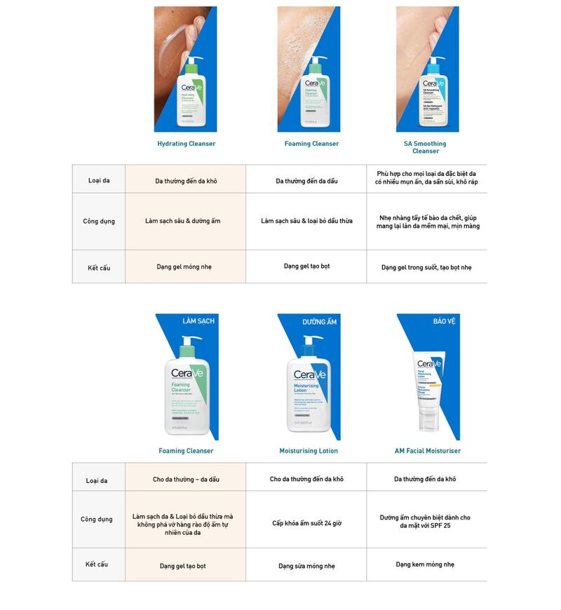 Hiện, Cocolux đang có sẵn hai phân loại trong dòng sản phẩm Sữa rửa mặt Cerave Cleanser: